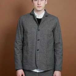 The fabric is a combination of a Herringbone weave and Pinstripes. It is made of 100% cotton with a pin striped pattern. It is classic and has strong traditions within men’s clothing with references to power and wealth. Pin stripes origins from uniforms worn by those who worked in banks, for the purpose of easily being recognized and not mistaken for being robbers or other intruders. In this case the colour gives the classic pinstripe a new more relaxed twist.