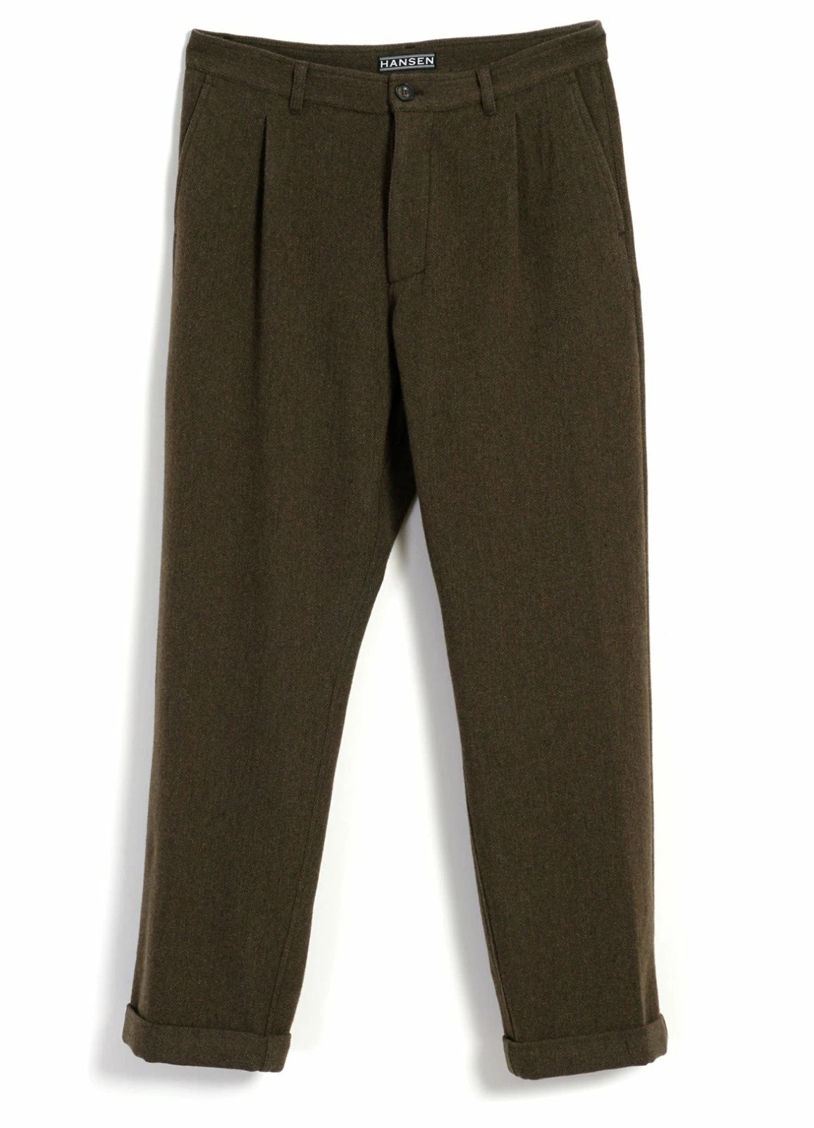 Pleated Wide Cut Trousers | Brown Herringbone