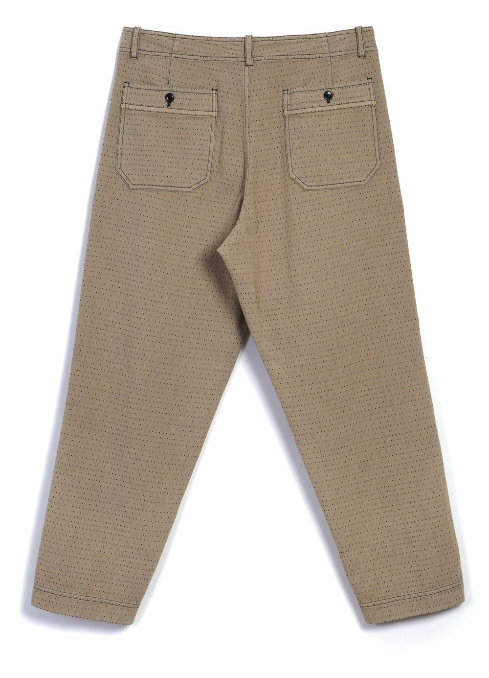 TRYGVE is a newcomer for the SS21 season. It is a pair of loosely fitted, slightly tapered and slightly cropped, trousers. It comes with two slanted front pockets and two patched on back pockets. The side seams are slightly twisted, providing an organic shape from the knee down.
