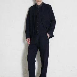 TYGE is a pair of loosely fitted, slightly tapered and slightly cropped, trousers. It comes with two slanted front pockets, two welted pockets and a zipper fly. The side seams are slightly twisted, giving an organic shape from the knee down.