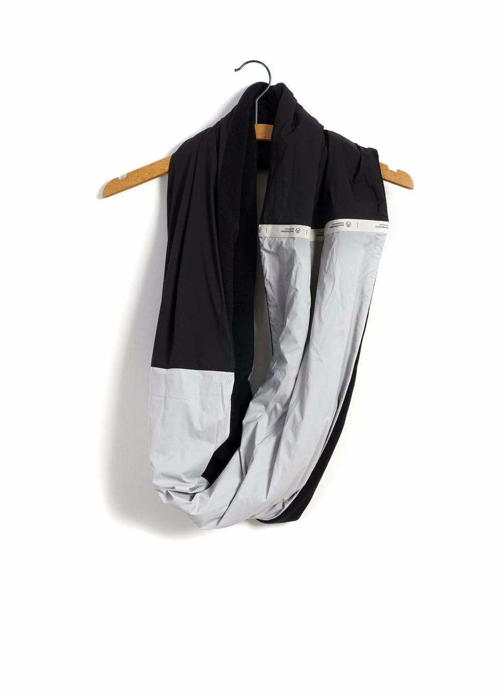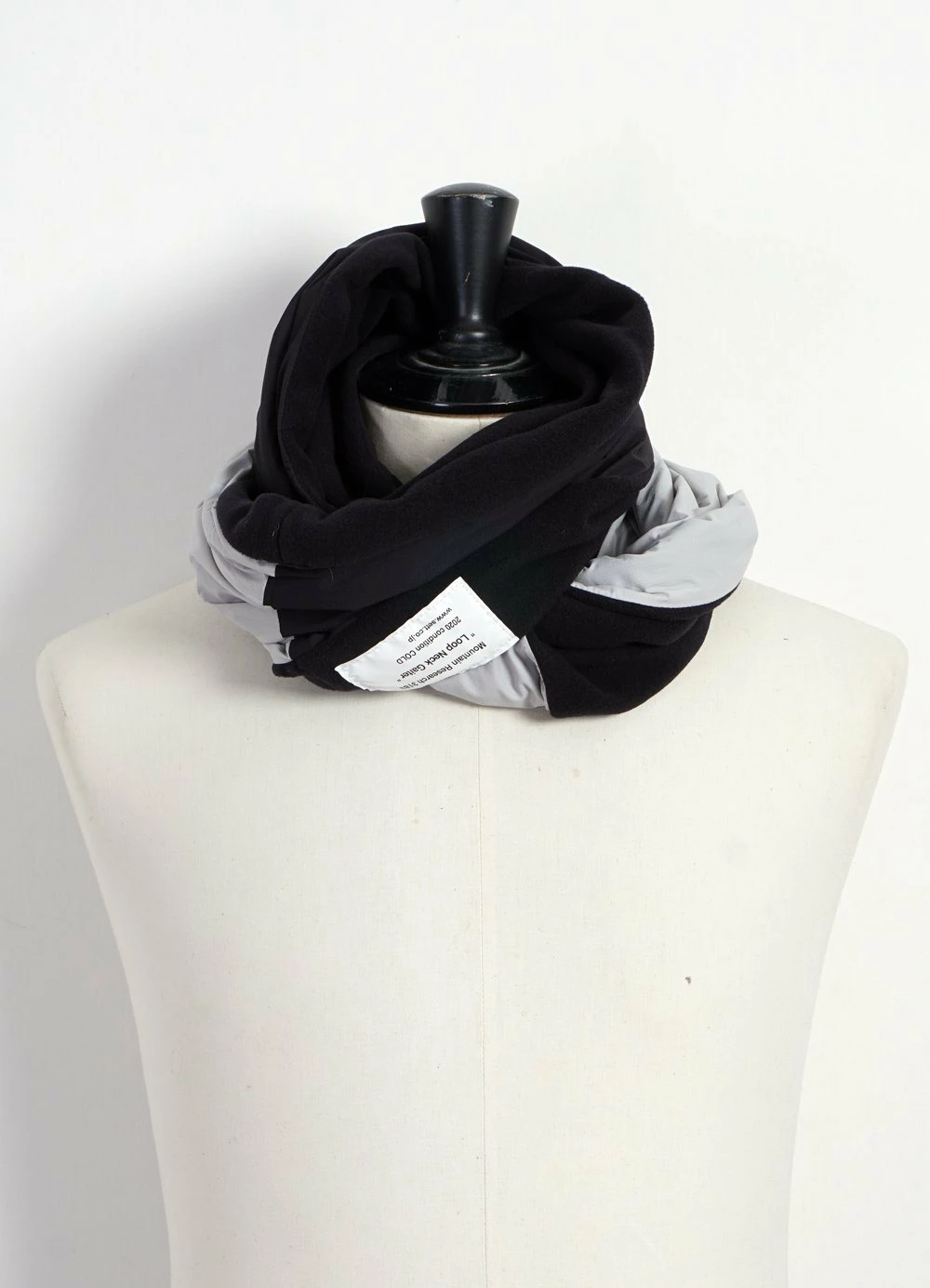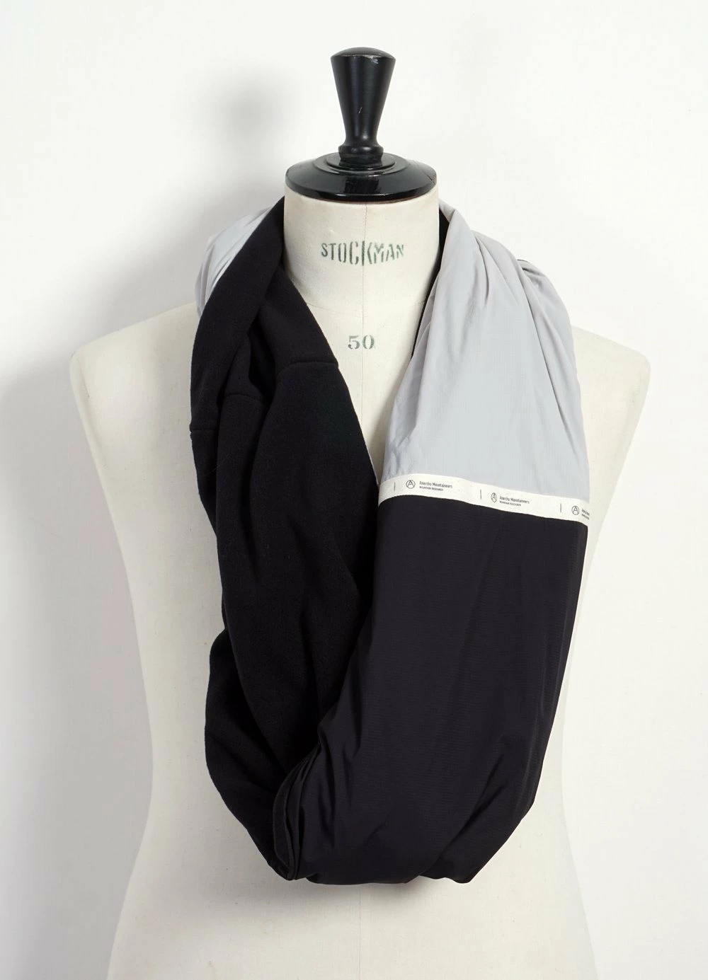A tube scarf in 2 colours, ready to be wrapped around the neck when the mountain gets too cold.